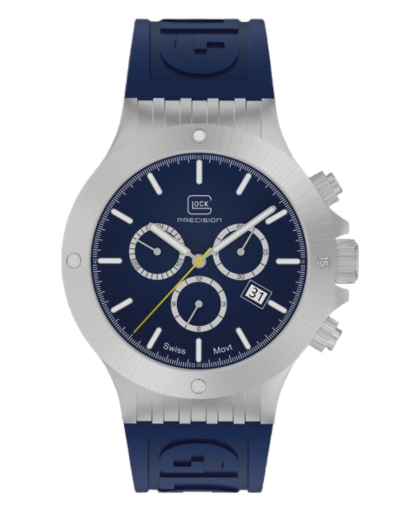 (704) 561-6030Glock Silver Steel Watch with Blue Band